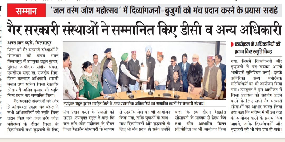 - आज का अखबार: गैर सरकारी संस्थाओं ने सम्मानित किए डीसी व अन्य अधिकारी December 3, 2025