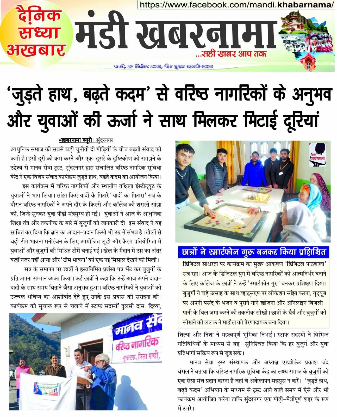 - “जुड़ते हाथ, बढ़ते कदम” – सुंदर नगर में वरिष्ठ नागरिकों के अनुभव और युवाओं की ऊर्जा ने साथ मिलकर मिटाई दूरियाँ December 29, 2025