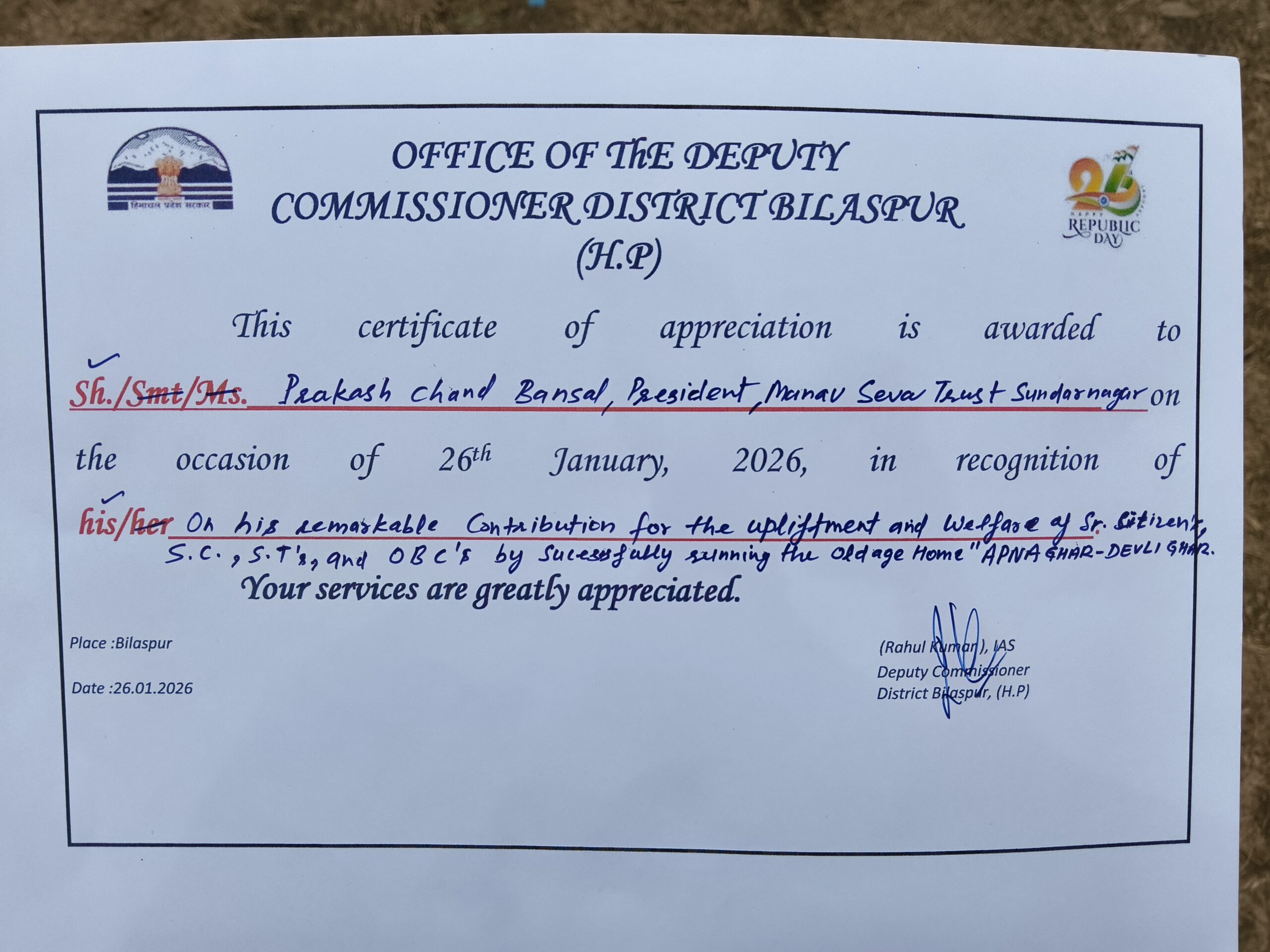 Latest updates and events of Manavsewa Trust